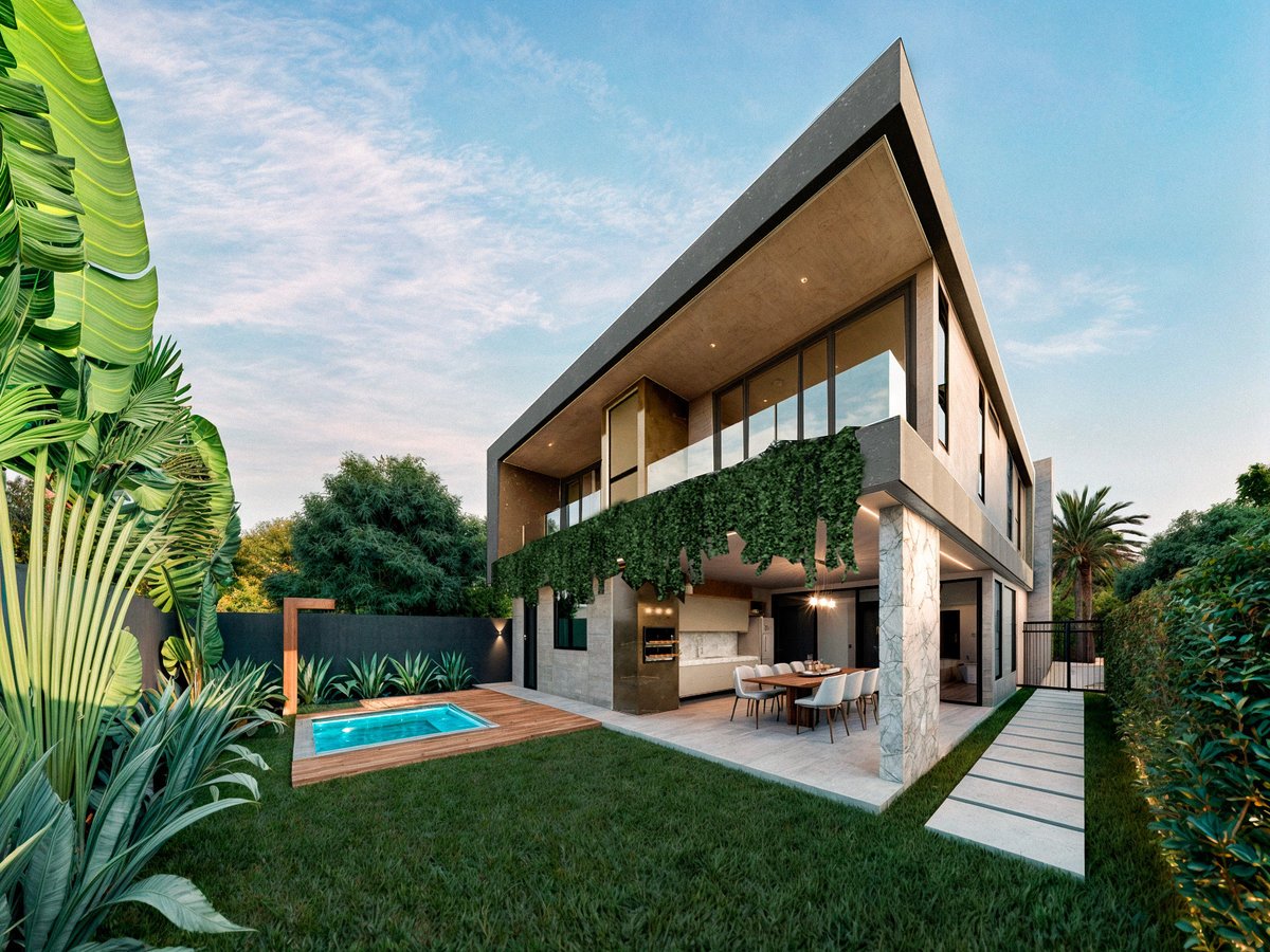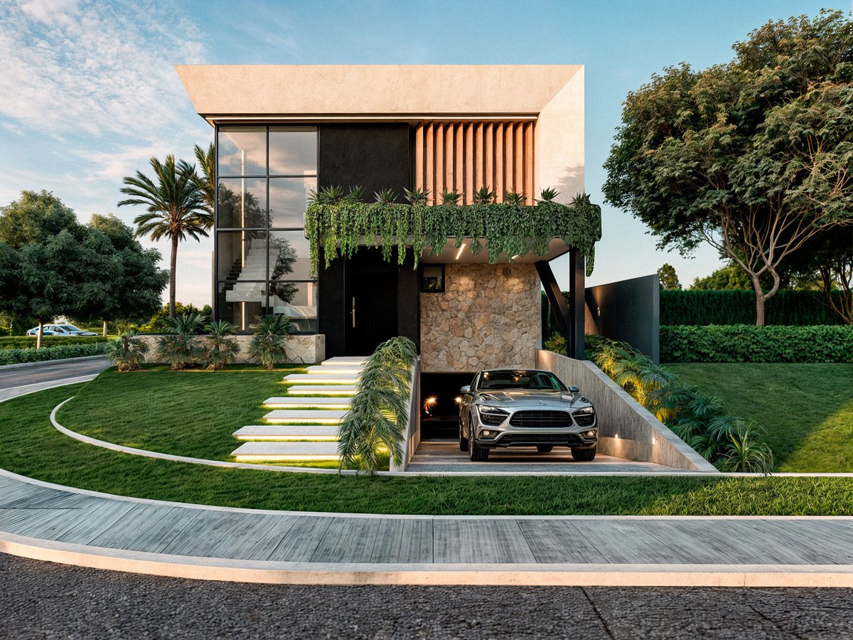 Este projeto representa uma residência contemporânea, com uma arquitetura marcada por linhas retas, volumes destacados e a perfeita integração entre materiais naturais e elementos modernos. Localizada em um terreno de esquina, a casa foi implantada de forma a valorizar ao máximo a orientação solar e a integração com o paisagismo ao redor.